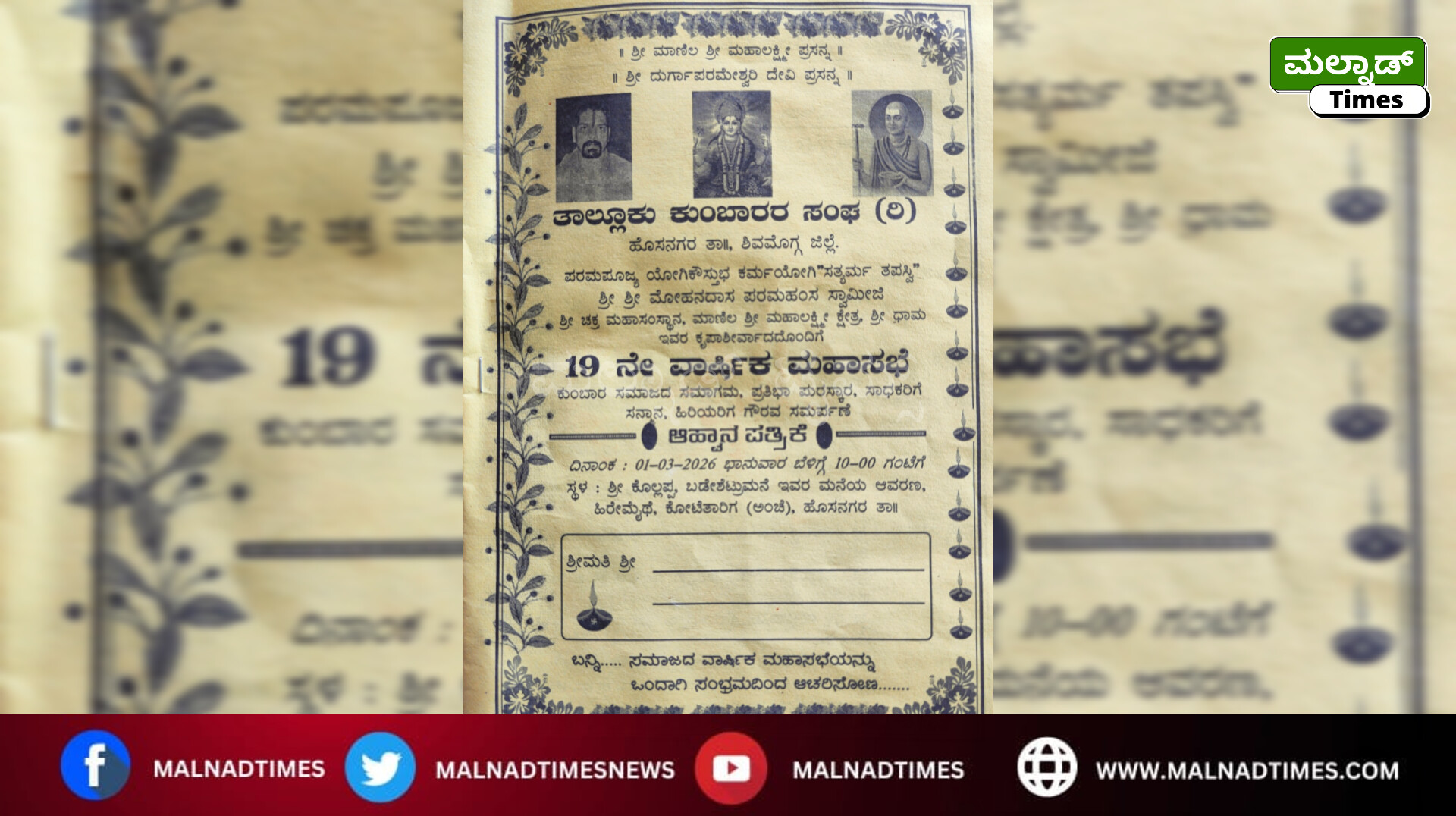 ರಿಪ್ಪನ್ಪೇಟೆ ; ಹೊಸನಗರ ತಾಲೂಕು ಕುಂಬಾರರ ಸಂಘದ 19ನೇ ವಾರ್ಷಿಕ ಮಹಾಸಭೆಯನ್ನು ಇಂದು (ಮಾ.01) ಚಿಕ್ಕಜೇನಿ ಗ್ರಾಪಂ ವ್ಯಾಪ್ತಿಯ ಹಿರೇಮೈಥೆಯ ಕೊಲ್ಲಪ್ಪ ಬಡೇಶೆಟ್ರುಮನೆ ಆವರಣದಲ್ಲಿ ಏರ್ಪಡಿಸಲಾಗಿದೆ ಎಂದು ಸಂಘದ ಅಧ್ಯಕ್ಷ ಶೇಖರಪ್ಪ ಎಲ್ ಹಿಂಡ್ಲೆಮನೆ ತಿಳಿಸಿದ್ದಾರೆ.
