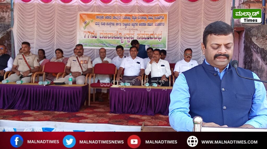 ಹೊಸನಗರ ; ಪ್ರಜಾಪ್ರಭುತ್ವ ವ್ಯವಸ್ಥೆಯಲ್ಲಿ ಭಾರತ ದೇಶಕ್ಕೆ ನಮ್ಮದೇ ಆಡಳಿತದಲ್ಲಿ ನಾವು ಈ ದೇಶದಲ್ಲಿ ಸ್ವತಂತ್ರವಾಗಿ ಬದುಕುತ್ತಿದ್ದೇವೆ ಎನ್ನುವ ಇಡೀ ಭಾರತ ಸಮಾಜವೇ ಎದ್ದು ನಿಂತು ಶಪಥ ಮಾಡುವ ಪವಿತ್ರವಾದ ದಿನ ಗಣರಾಜ್ಯೋತ್ಸವವಾಗಿದೆ ಎಂದು ಹೊಸನಗರ ತಹಸೀಲ್ದಾರ್ ಭರತ್‌ರಾಜ್‌ ಹೇಳಿದರು.