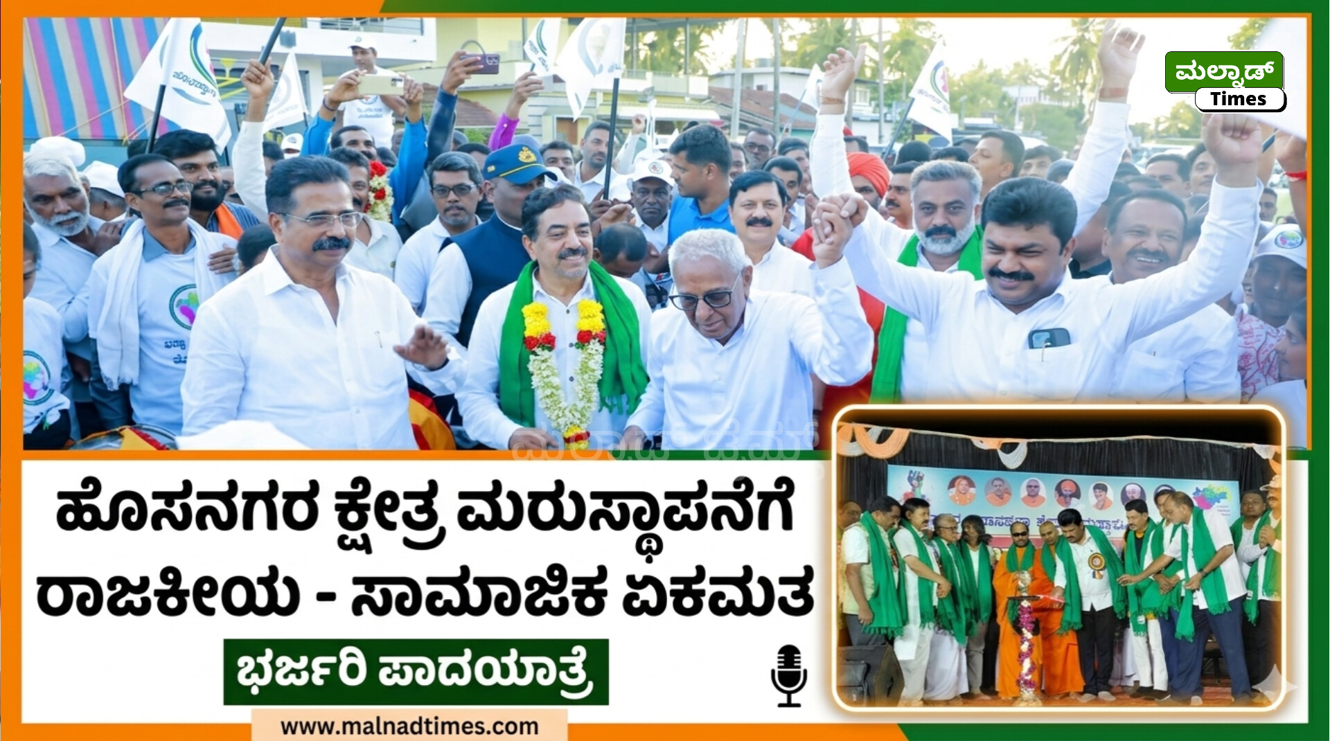 ರಿಪ್ಪನ್ಪೇಟೆ ; ಹೊಸನಗರ ವಿಧಾನಸಭಾ ಕ್ಷೇತ್ರದ ಸ್ಥಾನಮಾನ ಮರುಸ್ಥಾಪನೆಗೆ ರಾಜ್ಯಮಟ್ಟದಲ್ಲಿ ಬಲವಾದ ಒತ್ತಾಯ ಮೂಡಿದ್ದು, ಈ ಸಂಬಂಧ ನಡೆದ ಭಾರೀ ಪಾದಯಾತ್ರೆಯ ಸಮಾರೋಪ ಸಮಾರಂಭದಲ್ಲಿ ರಾಜಕೀಯ ನಾಯಕರು, ಮಠಾಧೀಶರು ಹಾಗೂ ವಿವಿಧ ಧರ್ಮಗಳ ಮುಖಂಡರು ಏಕಮತದಿಂದ ಬೆಂಬಲ ವ್ಯಕ್ತಪಡಿಸಿದರು.