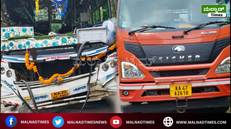 ಖಾಸಗಿ ಬಸ್ ಮತ್ತು ಲಾರಿ ನಡುವೆ ಅಪಘಾತ ; ಇಬ್ಬರಿಗೆ ಗಂಭೀರ ಗಾಯ !
