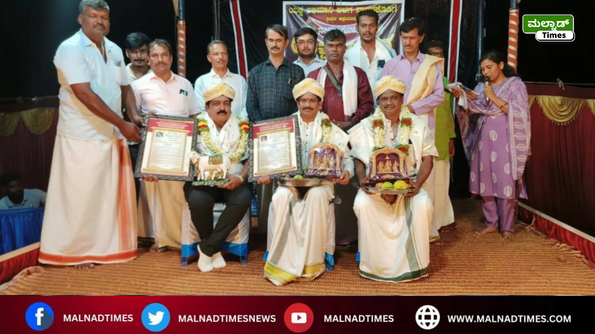 ವೇದಿಕೆಯಲ್ಲಿ ಹನುಮಗಿರಿ ಮೇಳದ ಹಿರಿಯ ಭಾಗವತ ರವಿಚಂದ್ರ ಕನ್ನಡಿಕಟ್ಟೆ, ಹೊಸನಗರ ತಾಲ್ಲೂಕು ಕಾರ್ಯನಿರತ ಪತ್ರಕರ್ತರ ಸಂಘದ ಅಧ್ಯಕ್ಷ ರವಿ ನಾಗರಕೊಡಿಗೆ ಅವರನ್ನು ಸನ್ಮಾನಿಸಲಾಯಿತು.