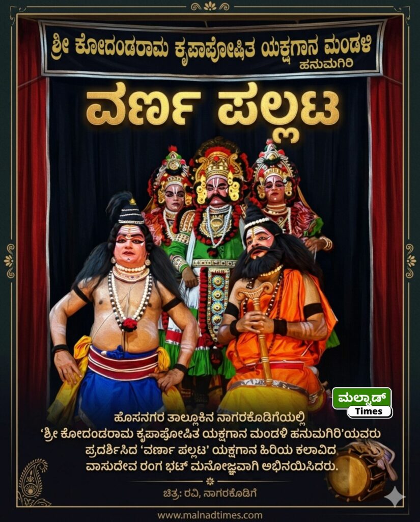 ನಂತರ ಶ್ರೀ ಕೊದಂಡರಾಮ ಕೃಪಾಪೋಷಿತ ಯಕ್ಷಗಾನ ಮಂಡಳಿ ಅವರಿಂದ ವರ್ಣ ಪಲ್ಲಟ ಎಂಬ ಯಕ್ಷಗಾನ ಪ್ರದರ್ಶನ ನಡೆಯಿತು.