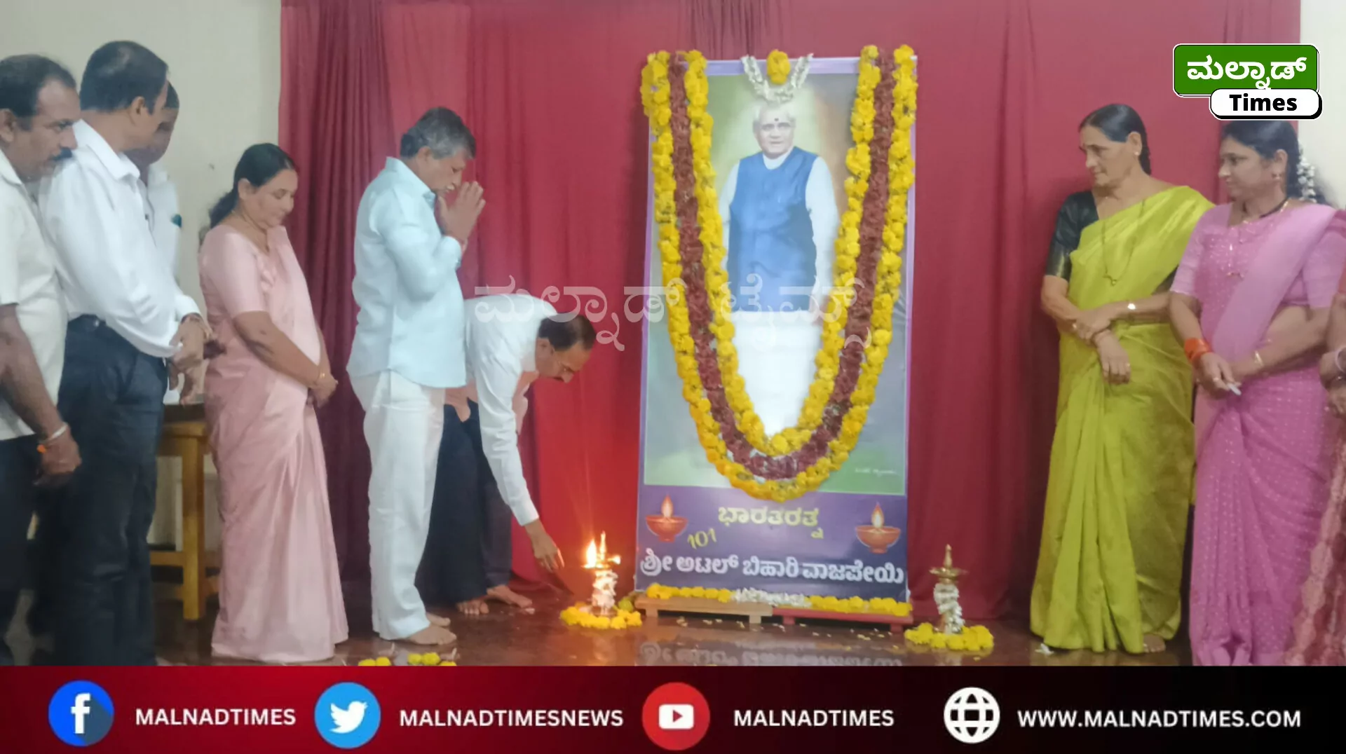 ರಿಪ್ಪನ್ಪೇಟೆಯ ಶ್ರೀರಾಮಮಂದಿರದಲ್ಲಿ ಬಿಜೆಪಿ ಮಹಾಶಕ್ತಿ ಕೇಂದ್ರದವರು ಮಾಜಿ ಪ್ರಧಾನಿ ಅಟಲ್ ಬಿಹಾರಿ ವಾಜಪೇಯರವರ 101ನೇ ಜನ್ಮದಿನಾಚರಣೆಯ ಕಾರ್ಯಕ್ರಮದಲ್ಲಿ ವಿಶೇಷ ಉಪನ್ಯಾಸಕರಾಗಿ ಭಾಗವಹಿಸಿ ಮಾತನಾಡಿ, ಸಂವೇದನಾಶೀಲಾ ಹೃದಯದ ಕವಿಗಳಾಗಿ ನಿರ್ಭೀತ ಪತ್ರಕರ್ತರಾಗಿ ತತ್ವ ನಿಷ್ಟೆ ಅತ್ಯುತ್ತಮ ಸಂಸದೀಯ ಪಟುವಾಗಿ ಆಶಾಧಾರಣ ಸಂಘಟಿಕನಾಗಿ ಜಾಗತಿಕವಾಗಿ ಗೌರವಗಳಿಸಿದ ರಾಜನೀತಿಜ್ಞನಾಗಿ ದೇಶದ ಅಧಿಕಾರದ ಚುಕ್ಕಾಣಿ ಹಿಡಿದ ಅಟಲ್ ಜೀ ಅವರ ಬದುಕೇ ಭಾರತದ ಪ್ರಜಾಪ್ರಭುತ್ವ ಮತ್ತು ರಾಷ್ಟ್ರೀಯ ಪ್ರಜ್ಞೆಗೆ ಆದರ್ಶಪ್ರಾಯ ಬೆಳಕಾಗಿದೆ. ಅವರ ತತ್ವಸಿದ್ದಾಂತಗಳು ನಮಗೆ ರಾಜಕೀಯ ಪ್ರೇರಣಾ ಶಕ್ತಿಯಾಗಿ ಸ್ಪೂರ್ತಿಯ ಸೆಲೆಯಾಗಿವೆ.