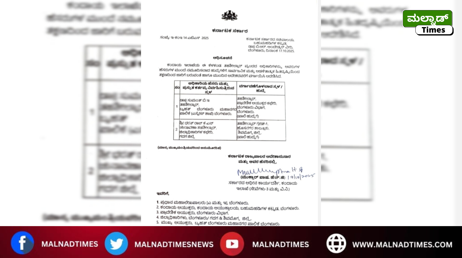 ಹೊಸನಗರಕ್ಕೆ ನೂತನ ತಹಸೀಲ್ದಾರ್ ಆಗಿ ಭರತ್ ರಾಜ್ ಕೆ.ಎನ್. ವರ್ಗಾವಣೆ