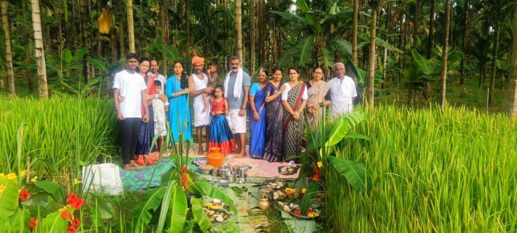ರೈತಾಪಿ ಕುಟುಂಬದ ರತ್ನಾಕರ್ರವರ ಮಕ್ಕಳು ಡಾಕ್ಟರ್, ಪಿಡಿಓ ಹಾಗೂ ಪೊಲೀಸ್ ಇಲಾಖೆಯಲ್ಲಿ ಇದ್ದರೂ ಇವರು ಹಳೆಯ ಸಂಪ್ರದಾಯವನ್ನು ಮರೆಯದೇ ಪ್ರತಿ ವರ್ಷವೂ ಭೂಮಿ ಹುಣ್ಣಿಮೆಯ ಹಬ್ಬದಂದು ಎಲ್ಲರೂ ಒಟ್ಟಿಗೆ ಸೇರಿ ಭತ್ತದ ಗದ್ದೆಯಲ್ಲಿ ಭೂಮಿ ತಾಯಿಗೆ ಪೂಜೆ ಸಲ್ಲಿಸುವ ಜೊತೆಗೆ ಬಂದ ಕುಟುಂಬಗಳಿಗೆ ಸಂಬಂಧಿಕರಿಗೆ ಹಾಗೂ ತಮ್ಮ ಆಪ್ತರಿಗೆ ಬೆಳಿಗ್ಗೆಯೇ ಊಟ ಹಾಕುವುದು ಇವರ ಸಂಪ್ರದಾಯವಾಗಿದೆ.