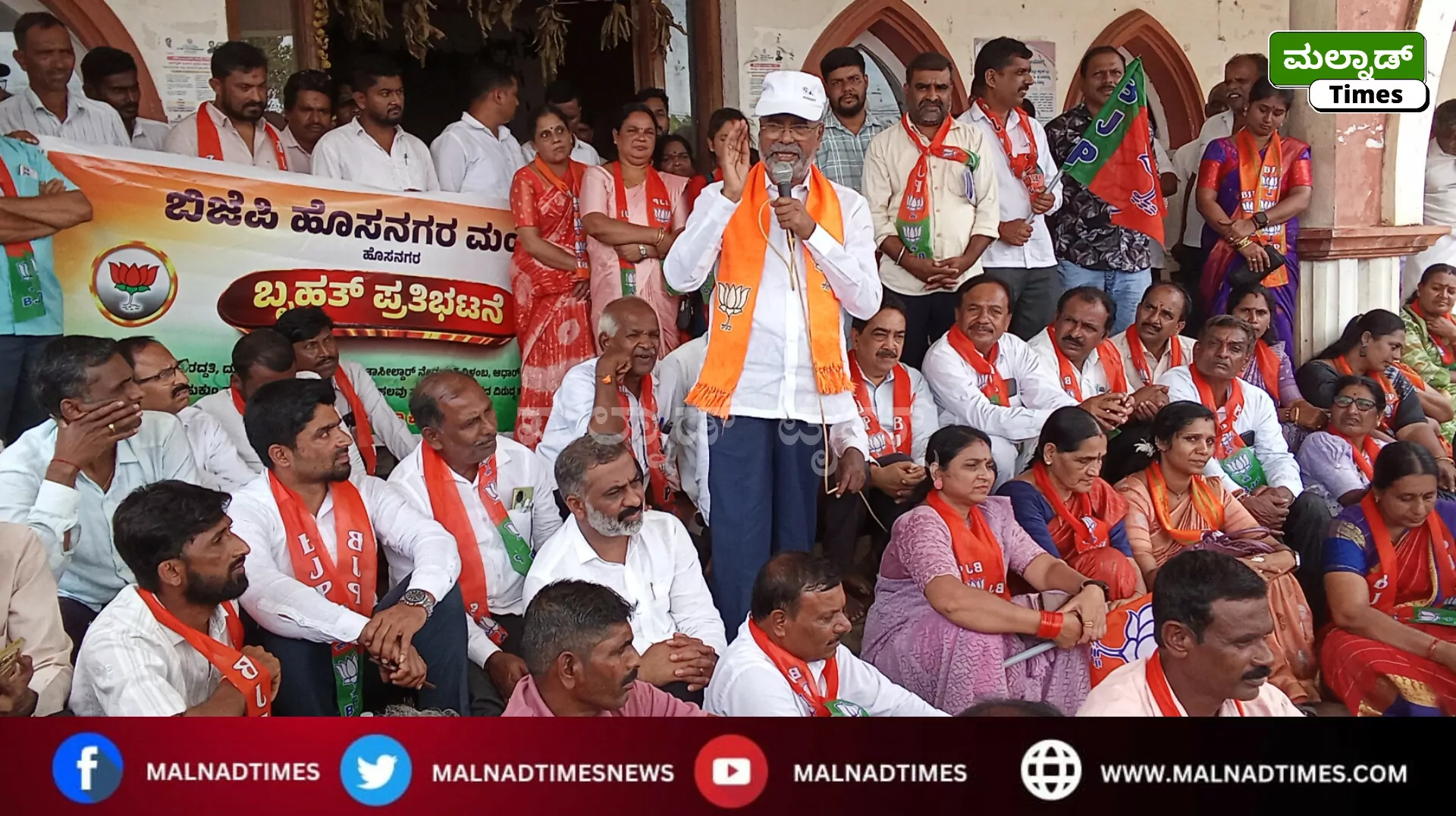 ಹೊಸನಗರ ; ರಾಜ್ಯದಲ್ಲಿ ಕಾಂಗ್ರೆಸ್ ಸರ್ಕಾರ ಸ್ಥಾಪನೆಗೊಂಡ ಬಳಿಕ ಸಾಗರ ವಿಧಾನಸಭಾ ಕ್ಷೇತ್ರದಲ್ಲಿ ಅಭಿವೃದ್ಧಿಯ ವಿಷಯದಲ್ಲಿ ಸಂಪೂರ್ಣ ವೈಫಲ್ಯ ಕಂಡುಬಂದಿದೆ. ಅದು ಅಲ್ಲದೇ ಹೊಸನಗರ ತಾಲ್ಲೂಕಿನ ಅಧಿಕಾರಿಗಳು ಶಾಸಕರ ಮತ್ತು ಅವರ ಹಿಂಬಾಲಕರ ಕೈಗೊಂಬೆಯಾಗಿ ಕೆಲಸ ಮಾಡುತ್ತಿದ್ದು ಬಡವರಿಗೆ, ರೈತರಿಗೆ ಹಾಗೂ ಬಿಜೆಪಿ ಕಾರ್ಯಕರ್ತರಿಗೆ ಹಿಂಸೆ ನೀಡುತ್ತಿದ್ದಾರೆ. ಇನ್ಮುಂದೆ ಶಾಸಕರ ಹಾಗೂ ಅವರ ಹಿಂಬಾಲಕರ ಆಟ ನಡೆಯುವುದಿಲ್ಲ ಅಧಿಕಾರಿಗಳ ಕಛೇರಿಯ ಮುಂದೆ ಧರಣಿ ನಡೆಸಿ ನ್ಯಾಯ ಕೊಡಿಸುವುದಾಗಿ ಬಿಜೆಪಿ ರಾಜ್ಯ ಉಪಾಧ್ಯಕ್ಷ ಹರತಾಳು ಹಾಲಪ್ಪ ಎಚ್ಚರಿಕೆ ನೀಡಿದರು.