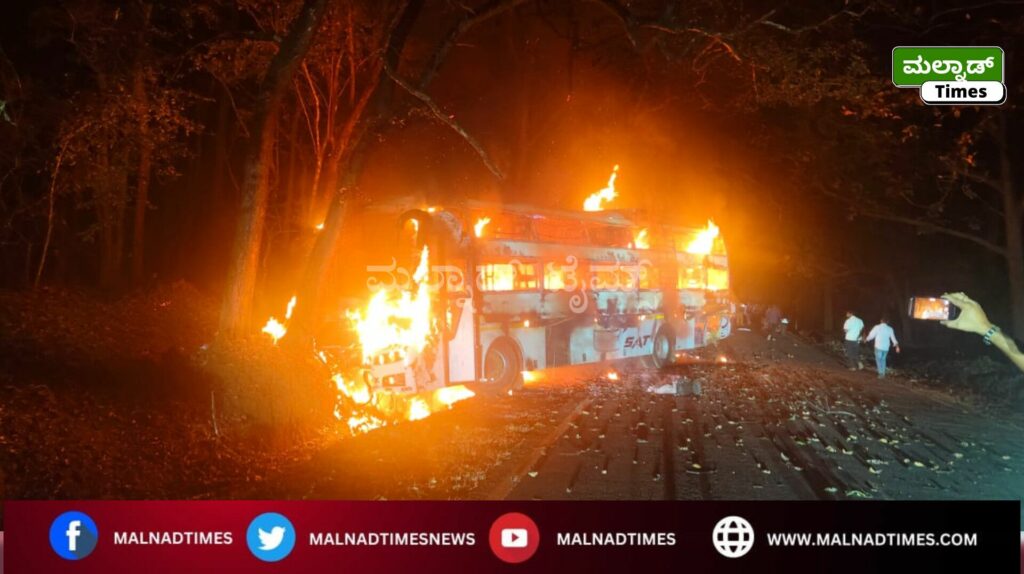 ರಿಪ್ಪನ್ಪೇಟೆ ; ಬೆಂಗಳೂರಿಗೆ ಹೊರಟ್ಟಿದ್ದ ಸ್ಲೀಪರ್ ಕೋಚ್ ಬಸ್ವೊಂದು ನಡು ರಸ್ತೆಯಲ್ಲೇ ಸುಟ್ಟು ಕರಕಲಾದ ಘಟನೆ ತಡರಾತ್ರಿ 10:45 ರ ಸುಮಾರಿಗೆ ಅರಸಾಳು ಮತ್ತು ಸೂಡೂರು ನಡುವೆ ನಡೆದಿದೆ.
