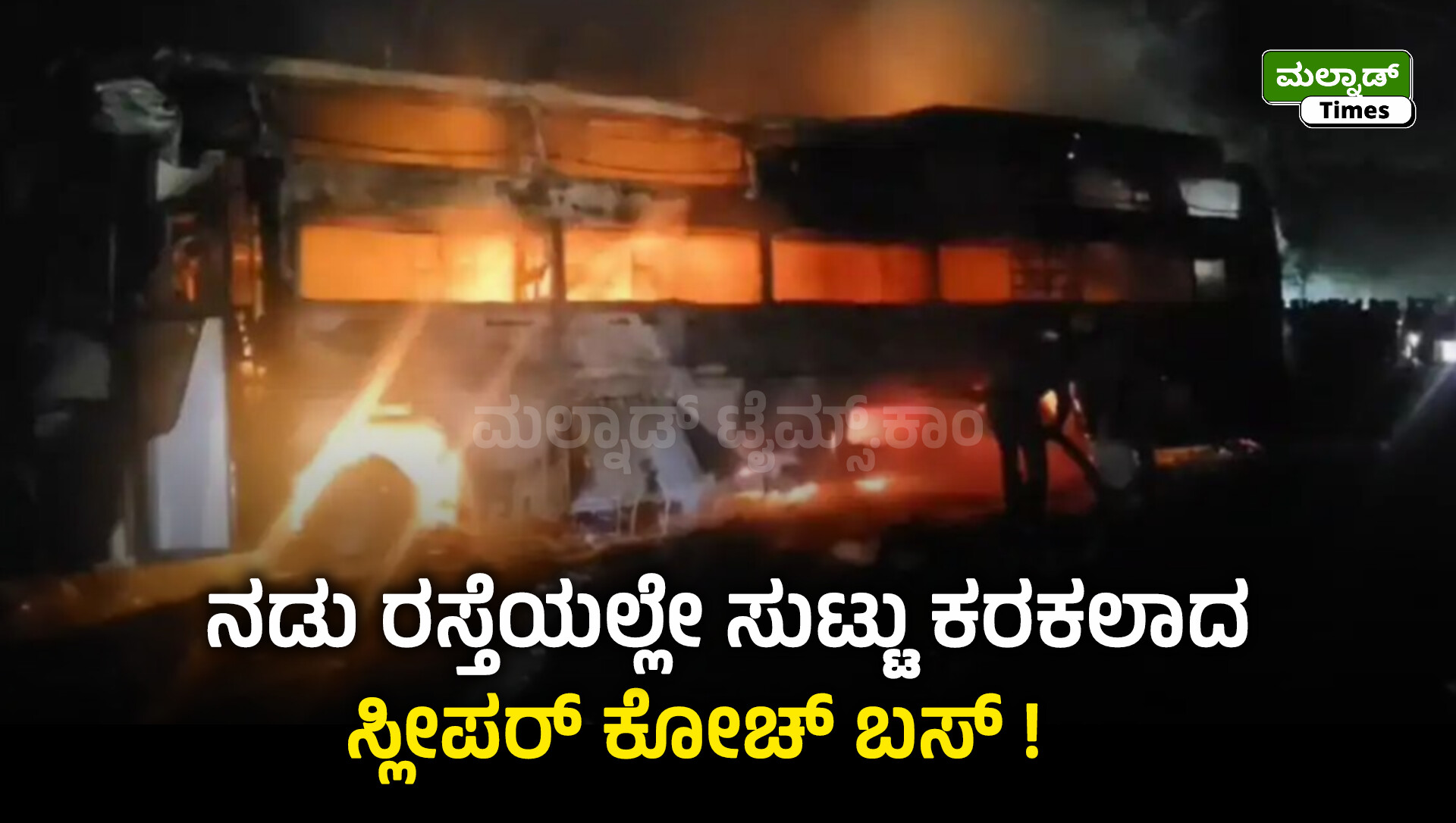 ರಿಪ್ಪನ್ಪೇಟೆ ; ಬೆಂಗಳೂರಿಗೆ ಹೊರಟ್ಟಿದ್ದ ಸ್ಲೀಪರ್ ಕೋಚ್ ಬಸ್ವೊಂದು ನಡು ರಸ್ತೆಯಲ್ಲೇ ಸುಟ್ಟು ಕರಕಲಾದ ಘಟನೆ ತಡರಾತ್ರಿ 10:45 ರ ಸುಮಾರಿಗೆ ಅರಸಾಳು ಮತ್ತು ಸೂಡೂರು ನಡುವೆ ನಡೆದಿದೆ.