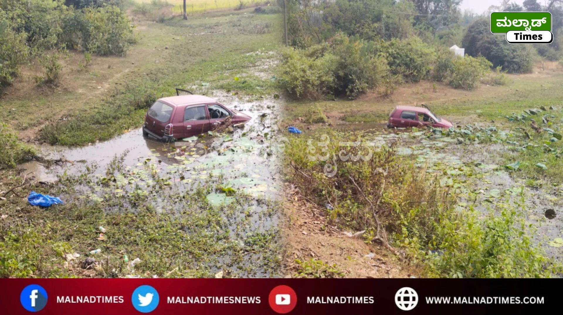 ಹಾಸನದಿಂದ ಕೊಲ್ಲೂರಿಗೆ ತೆರಳುತ್ತಿದ್ದ ಮಾರುತಿ ಆಲ್ಟೋ ಕಾರು ತಾವರೆಕೆರೆ ಬಳಿಯಲ್ಲಿ ಏಕಾಏಕಿ ಚಾಲಕನ ನಿಯಂತ್ರಣ ತಪ್ಪಿ ಕೆರೆಗೆ ಉರುಳಿದೆ. ಕಾರಿನಲ್ಲಿ ಮೂವರು ಪ್ರಯಾಣಿಸುತ್ತಿದ್ದು ಅದೃಷ್ಟವಶಾತ್ ಪ್ರಾಣಾಪಾಯದಿಂದ ಪಾರಾಗಿದ್ದಾರೆ.