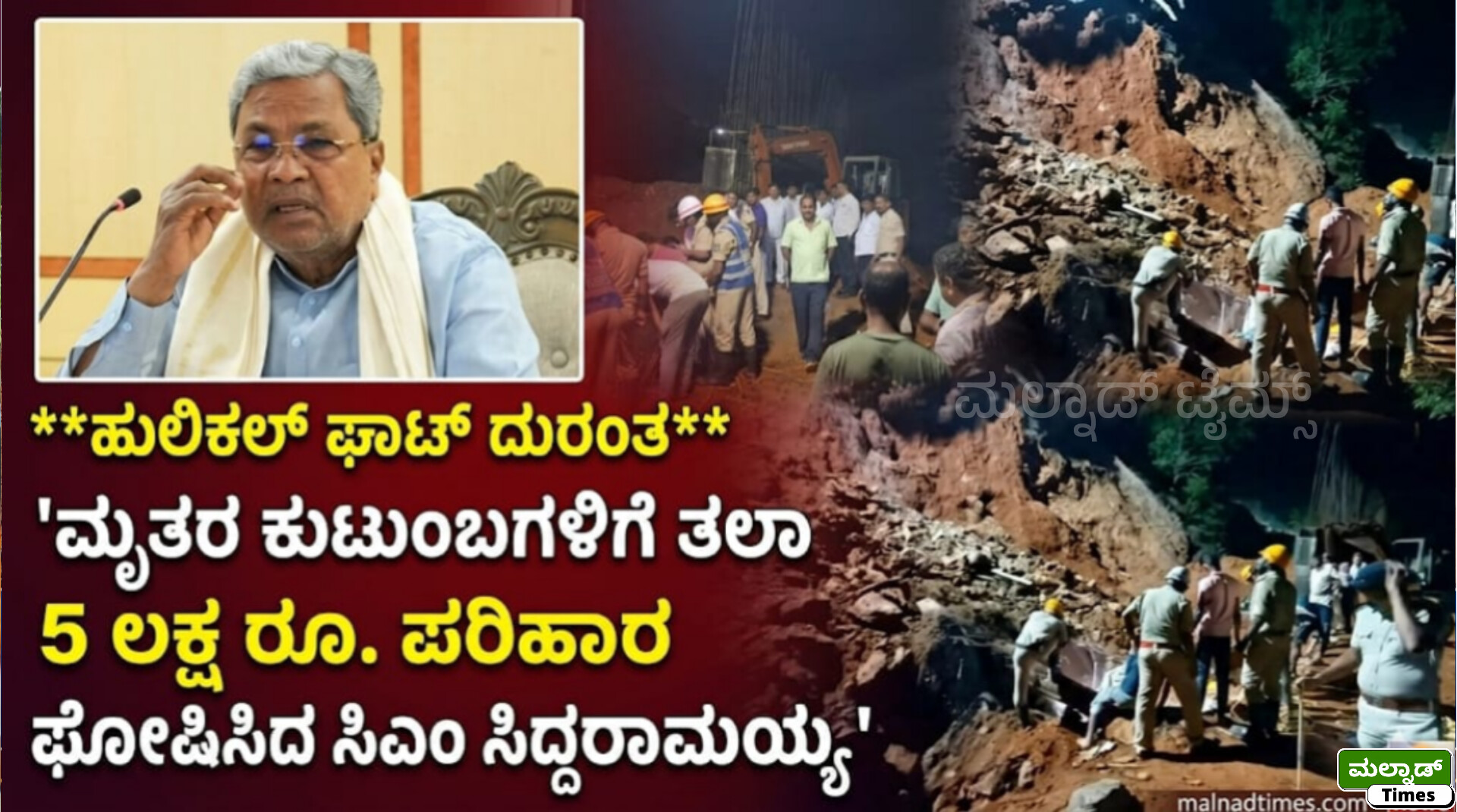 ‘ಶಿವಮೊಗ್ಗ ಜಿಲ್ಲೆ ಹೊಸನಗರ ತಾಲ್ಲೂಕಿನ ಹುಲಿಕಲ್ ಘಾಟಿ ತಿರುವಿನಲ್ಲಿ ರಸ್ತೆ ತಡೆಗೋಡೆ ನಿರ್ಮಾಣ ಕಾಮಗಾರಿಯ ವೇಳೆ ಮಣ್ಣು ಕುಸಿದು ಮೂವರು ಕಾರ್ಮಿಕರು ಮೃತಪಟ್ಟ ಸುದ್ದಿ ಕೇಳಿ ದುಃಖವಾಯಿತು. ಮೃತ ದುರ್ದೈವಿ ಕಾರ್ಮಿಕರ ಆತ್ಮಕ್ಕೆ ಚಿರಶಾಂತಿ ದೊರಕಲಿ, ಅವರ ಕುಟುಂಬ ಸದಸ್ಯರಿಗೆ ನೋವು ಭರಿಸುವ ಶಕ್ತಿ ಸಿಗಲಿ ಎಂದು ಪ್ರಾರ್ಥಿಸುತ್ತೇನೆ. ಘಟನೆ ಸಂಬಂಧ ಜಿಲ್ಲಾ ಉಸ್ತುವಾರಿ ಸಚಿವರಾದ ಮಧು ಬಂಗಾರಪ್ಪ ಅವರೊಂದಿಗೆ ಮಾತುಕತೆ ನಡೆಸಿ, ಮಾಹಿತಿ ಪಡೆದಿದ್ದೇನೆ. ಕುಟುಂಬಕ್ಕೆ ಆಧಾರವಾಗಿದ್ದ ದುಡಿಯುವ ಜೀವಗಳು ಈ ಘಟನೆಯಲ್ಲಿ ಬಲಿಯಾಗಿದ್ದು, ಮಾನವೀಯ ನೆಲೆಯಲ್ಲಿ ಮೃತ ಕಾರ್ಮಿಕರ ಕುಟುಂಬಕ್ಕೆ ತಲಾ ರೂ.5 ಲಕ್ಷ ಪರಿಹಾರ ನೀಡಲಾಗುವುದು.’