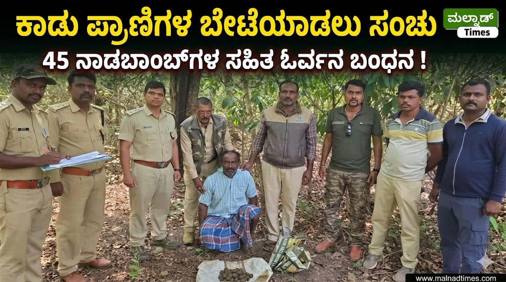 ಕಾಡು ಪ್ರಾಣಿಗಳ ಬೇಟೆಯಾಡಲು ಸಂಚು ; 45 ನಾಡಬಾಂಬ್‌ಗಳ ಸಹಿತ ಓರ್ವನ ಬಂಧನ