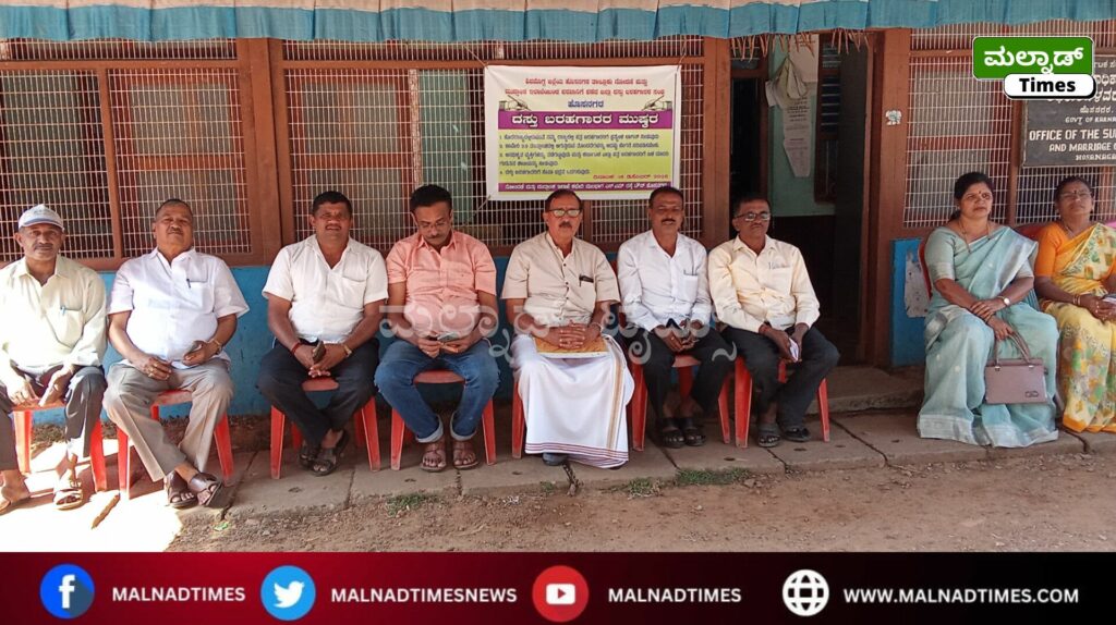 ಹೊಸನಗರದ ಉಪ ನೊಂದಣಾಧಿಕಾರಿಗಳ ಕಛೇರಿಯ ಮುಂಭಾಗ ತಮ್ಮ ಬೇಡಿಕೆಗಾಗಿ ಒಂದು ದಿನದ ಸತ್ಯಾಗ್ರಹ ನಡೆಸಿ ಉಪನೊಂದಣಾಧಿಕಾರಿ ಶಿವಾನಂದ್ರಿಗೆ ಮನವಿ ಪತ್ರ ಸಲ್ಲಿಸಿ ಮಾತನಾಡಿದ ಅವರು,
