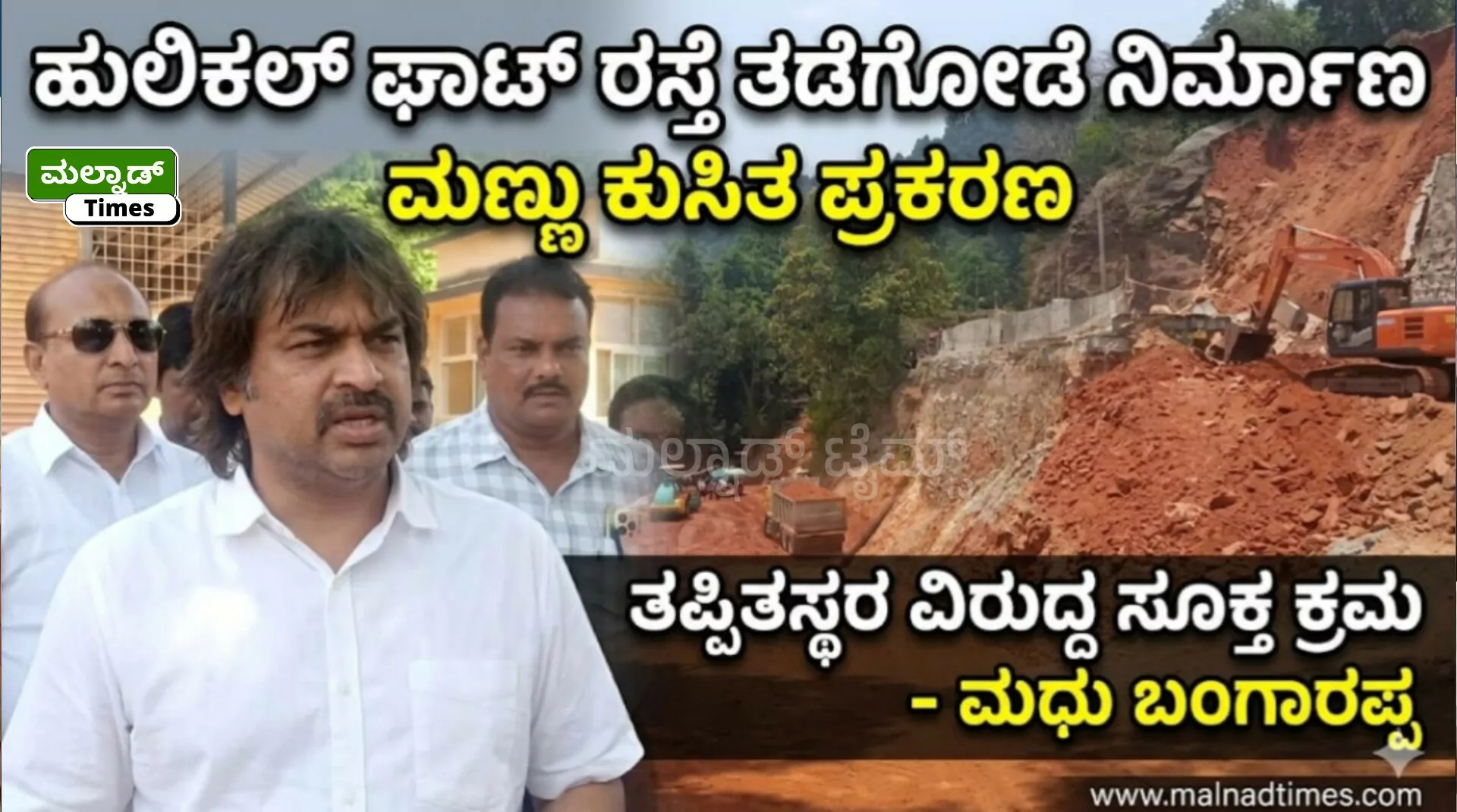 ಹೊಸನಗರ ; ಮಲೆನಾಡು ಮತ್ತು ಕರಾವಳಿಯನ್ನು ಸಂಪರ್ಕಿಸುವ ಪ್ರಮುಖ ಕೊಂಡಿಯಾಗಿರುವ ಹೊಸನಗರ ತಾಲೂಕಿನ ವ್ಯಾಪ್ತಿಯ ಹುಲಿಕಲ್ ಘಾಟ್ ರಸ್ತೆ ಕಾಮಗಾರಿ ವೇಳೆ ಸಂಭವಿಸಿದ ಮಣ್ಣು ಕುಸಿತ ಅವಘಡದ ಕುರಿತು ಸಮಗ್ರ ವಿವರ ಪಡೆದು, ತಪ್ಪಿತಸ್ಥರ ವಿರುದ್ದ ಕಾನೂನಾತ್ಮಕ ಕ್ರಮ ವಹಿಸಲಾಗುವುದು ಎಂದು ಶಾಲಾ ಶಿಕ್ಷಣ ಹಾಗೂ ಸಾಕ್ಷರತಾ ಇಲಾಖೆ ಹಾಗೂ ಜಿಲ್ಲಾ ಉಸ್ತುವಾರಿ ಸಚಿವ ಮಧು ಬಂಗಾರಪ್ಪ ತಿಳಿಸಿದರು.