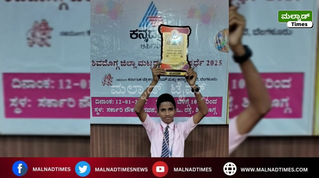 ಹೊಸನಗರ ; ಮಕ್ಕಳ ದಿನಾಚರಣೆ ಪ್ರಯುಕ್ತ ಕನ್ನಡಪ್ರಭ ಹಾಗೂ ಸುವರ್ಣ ನ್ಯೂಸ್ ಆಯೋಜಿಸಿದ್ದ ಶಿವಮೊಗ್ಗ ಜಿಲ್ಲಾ ಮಟ್ಟದ ಚಿತ್ರಕಲಾ ಸ್ಪರ್ಧೆ 2025 ರಲ್ಲಿ ಹೊಸನಗರ ತಾಲೂಕಿನ ಗೇರುಪುರ ಗ್ರಾಮದ ಶ್ರೀಮತಿ ಇಂದಿರಾ ಗಾಂಧಿ ವಸತಿ ಶಾಲೆಯ (ಎಸ್.ಸಿ. -273) 10ನೇ ತರಗತಿ ವಿದ್ಯಾರ್ಥಿ ಚೇತನ್ ಕೆ.ಎಸ್. ಚಿತ್ರಕಲಾ ಸ್ಪರ್ಧೆಯಲ್ಲಿ ಭಾಗವಹಿಸಿ ಜಿಲ್ಲಾ ಮಟ್ಟದಲ್ಲಿ ಪ್ರಥಮ ಸ್ಥಾನ ಪಡೆದು ರಾಜ್ಯ ಮಟ್ಟಕ್ಕೆ ಆಯ್ಕೆಯಾಗಿ ತಾಲೂಕಿಗೆ ಕೀರ್ತಿ ತಂದಿದ್ದಾನೆ.