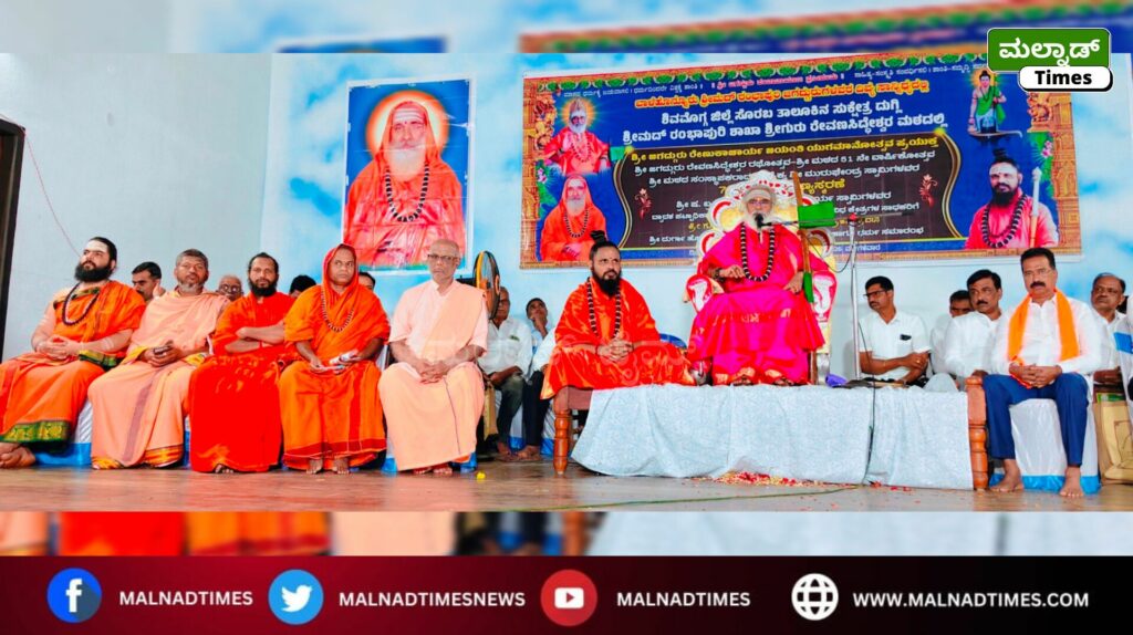 ಸೊರಬ ; ಮಾನವ ಜೀವನದ ಉನ್ನತಿಗೆ ಮತ್ತು ಪ್ರಗತಿಗೆ ಧರ್ಮ ಪರಿಪಾಲನೆ ಮುಖ್ಯ. ಮಾತು ಮನ ಕೃತಿ ಒಂದಾಗಿ ಬಾಳಿದರೆ ಬದುಕಿಗೆ ಬಹಳಷ್ಟು ಬೆಲೆ ಬರುತ್ತದೆ. ಸತ್ಯ ಶುದ್ಧವಾದ ಧರ್ಮ ಪಾಲನೆಯಿಂದ ಜೀವನ ಉಜ್ವಲಗೊಳ್ಳುವುದೆಂದು ಬಾಳೆಹೊನ್ನೂರು ಶ್ರೀ ರಂಭಾಪುರಿ ಡಾ. ವೀರಸೋಮೇಶ್ವರ ಜಗದ್ಗುರುಗಳು ಅಭಿಪ್ರಾಯಪಟ್ಟರು.