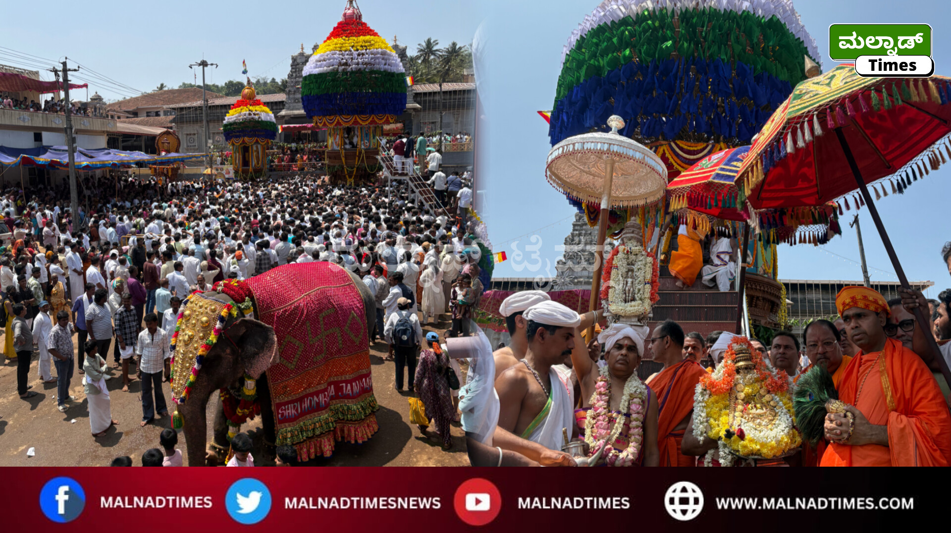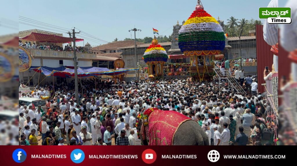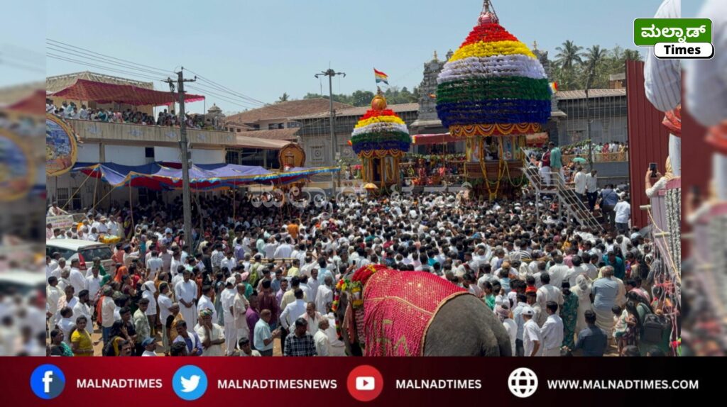 ಹೊಂಬುಜ ; ಐತಿಹಾಸಿಕ, ಜೈನ ಧಾರ್ಮಿಕ ಹಿನ್ನೆಲೆಯ ಅತಿಶಯ ಶ್ರೀಕ್ಷೇತ್ರ ಹೊಂಬುಜ ಶ್ರೀ ಪಾರ್ಶ್ವನಾಥ ಸ್ವಾಮಿ, ಜಗನ್ಮಾತೆ ಯಕ್ಷಿ ಶ್ರೀ ಪದ್ಮಾವತಿ ದೇವಿ ದಿವ್ಯ ಪಾವನ ಸನ್ನಿಧಿಯಲ್ಲಿ ವಾರ್ಷಿಕ ಮಹಾರಥೋತ್ಸವವು ಮೂಲಾ ನಕ್ಷತ್ರದಲ್ಲಿ ರಥಾರೋಹಣವು ಜಿನಾಗಮೋಕ್ತ ವಿಧಿಪೂರ್ವಕ 12.30 ಗಂಟೆಗೆ ನೆರವೇರಿತು.