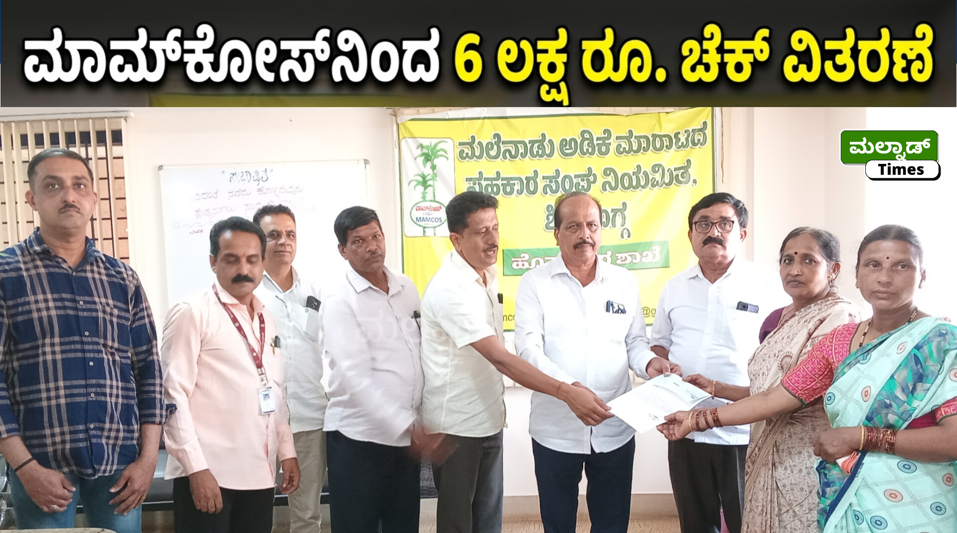 ಮಾಮ್‌ಕೋಸ್‌ನಿಂದ 6 ಲಕ್ಷ ರೂ. ಚೆಕ್ ವಿತರಣೆ | ಅಡಿಕೆ ಬೆಳೆಗಾರರ, ಕೂಲಿ ಕಾರ್ಮಿಕರ ಏಳಿಗೆಗಾಗಿ ಸಂಸ್ಥೆ ದುಡಿಯುತ್ತಿದೆ ; ಹೆಚ್.ಎಸ್. ಮಹೇಶ್ ಹುಲ್ಕುಳಿ