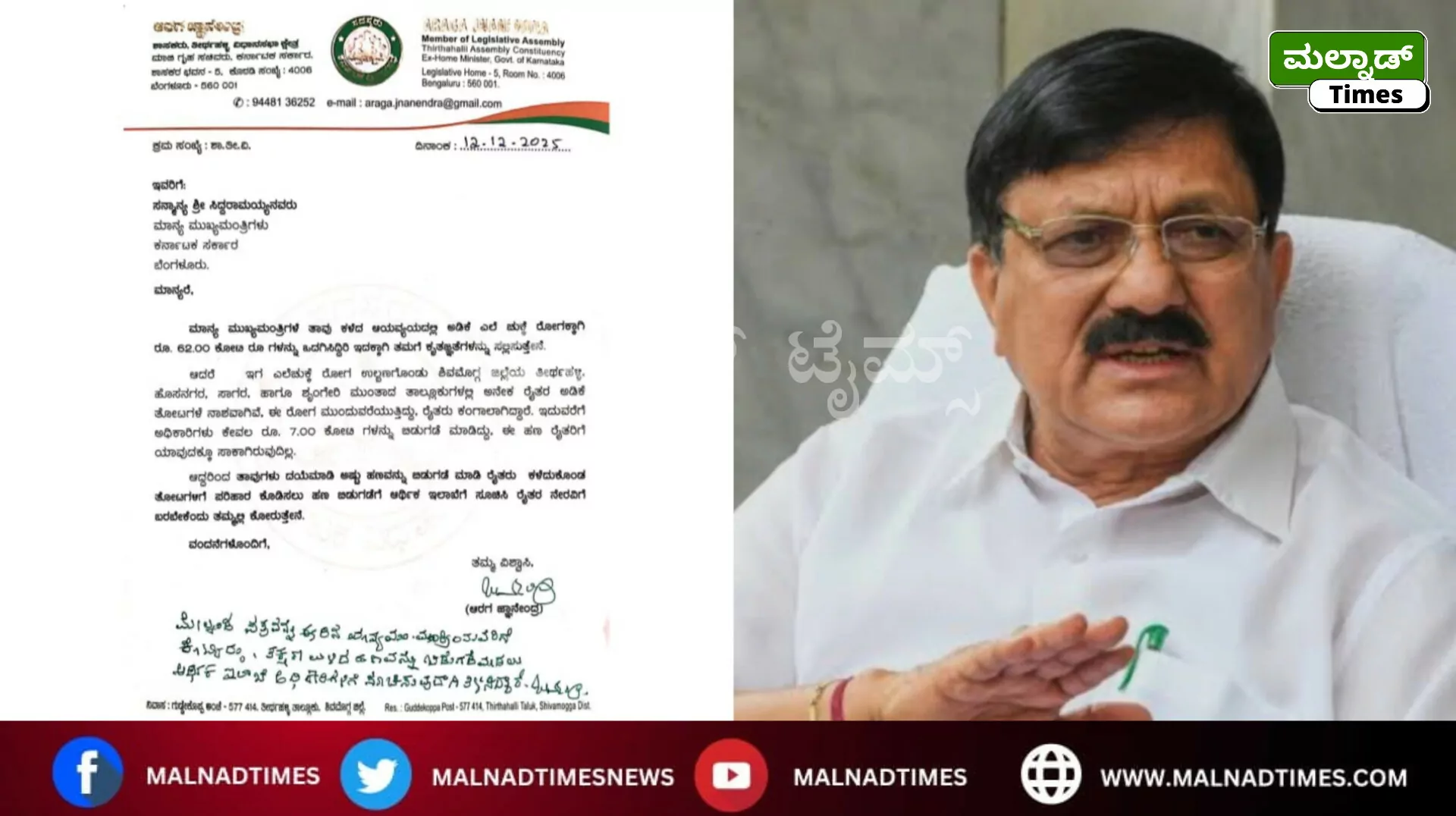 ಹೊಸನಗರ ; ಕಳೆದ ಬಜೆಟ್ನಲ್ಲಿ ಎಲೆಚುಕ್ಕಿ ರೋಗಕ್ಕೆ ತುತ್ತಾದ ರಾಜ್ಯದ ಅಡಿಕೆ ಬೆಳೆಗಾರರಿಗೆ ಪರಿಹಾರವಾಗಿ 62 ಕೋಟಿ ರೂ. ಅನುದಾನವನ್ನು ರಾಜ್ಯ ಸರ್ಕಾರ ಮೀಸಲಿಟ್ಟಿದ್ದು, ಈವರೆಗೆ ಕೇವಲ 7 ಕೋಟಿ ರೂ. ಬಿಡುಗಡೆ ಮಾಡಿದೆ. ಕೂಡಲೇ ಉಳಿಕೆ ಹಣ ಬಿಡುಗಡೆ ಮಾಡುವಂತೆ ಆಗ್ರಹಿಸಿ ತೀರ್ಥಹಳ್ಳಿ ಶಾಸಕ ಆರಗ ಜ್ಞಾನೇಂದ್ರ ರಾಜ್ಯದ ಮುಖ್ಯಮಂತ್ರಿ ಸಿದ್ದರಾಮಯ್ಯ ಅವರಿಗೆ ಶುಕ್ರವಾರ ಮನವಿ ಪತ್ರ ಸಲ್ಲಿಸಿದ್ದಾರೆ.