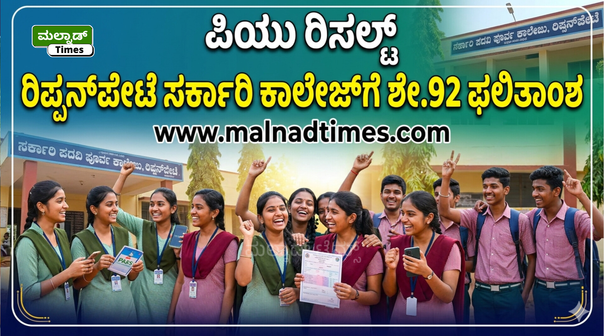 ಪಿಯು ರಿಸಲ್ಟ್ ; ರಿಪ್ಪನ್‌ಪೇಟೆ ಸರ್ಕಾರಿ ಕಾಲೇಜ್‌ಗೆ ಶೇ.92 ಫಲಿತಾಂಶ