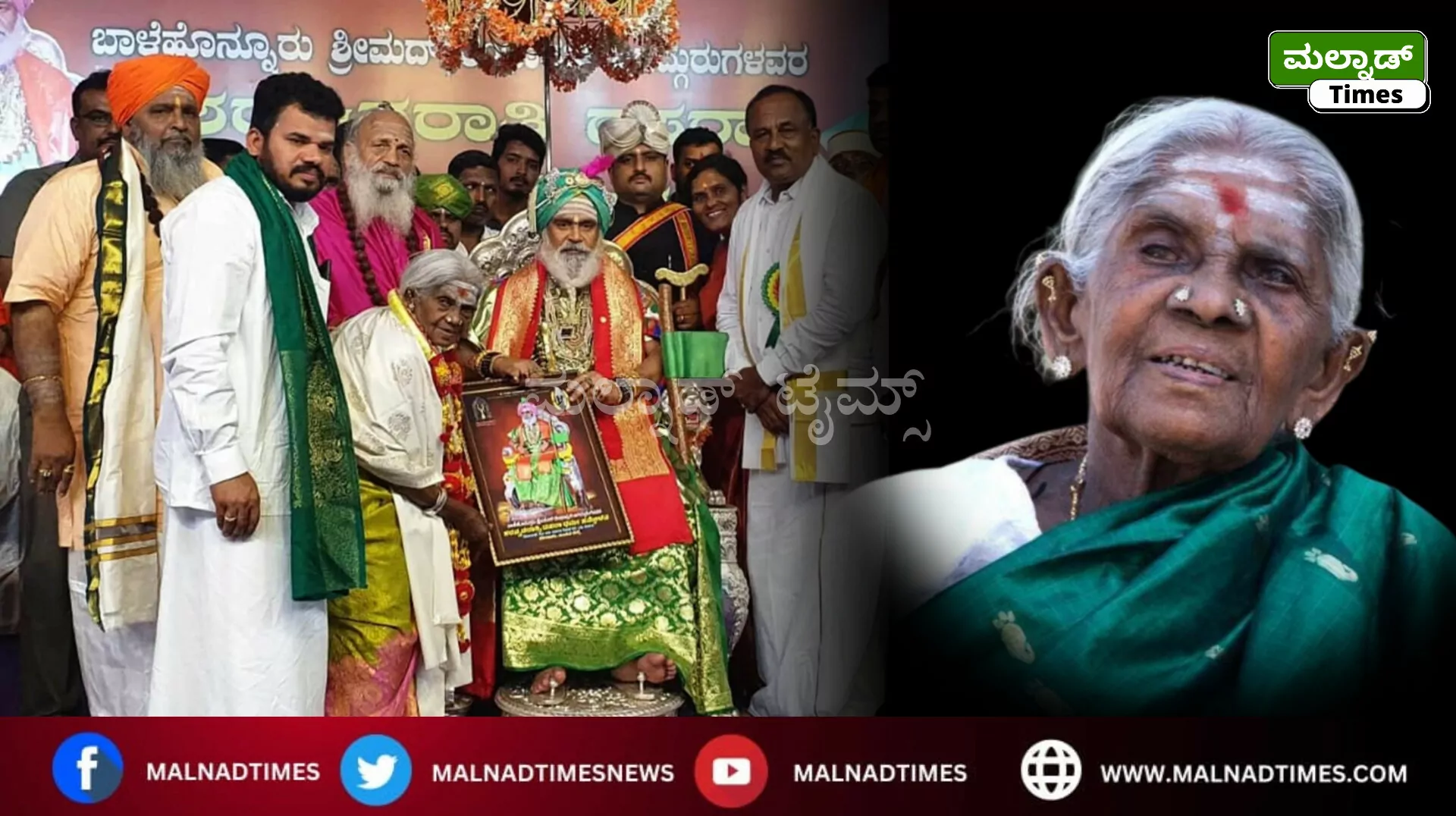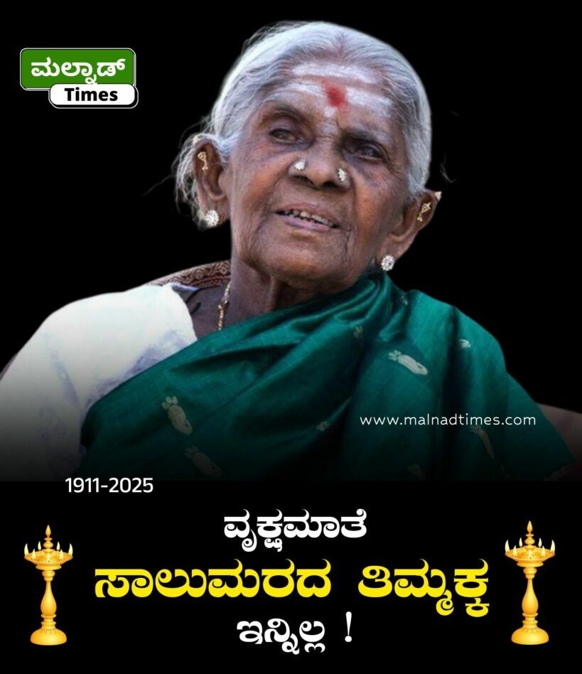ಬಾಳೆಹೊನ್ನೂರು ; ವೃಕ್ಷ ಮಾತೆಯೆಂದೇ ಖ್ಯಾತಿಯಾಗಿದ್ದ ಶತಾಯುಷಿ ಸಾಲುಮರದ ತಿಮ್ಮಕ್ಕ (114) ಅಗಲಿಕೆಗೆ ಬಾಳೆಹೊನ್ನೂರು ಶ್ರೀ ರಂಭಾಪುರಿ ಡಾ.ವೀರಸೋಮೇಶ್ವರ ಜಗದ್ಗುರುಗಳು ತಮ್ಮ ತೀವ್ರ ಸಂತಾಪ ವ್ಯಕ್ತಪಡಿಸಿದ್ದಾರೆ.