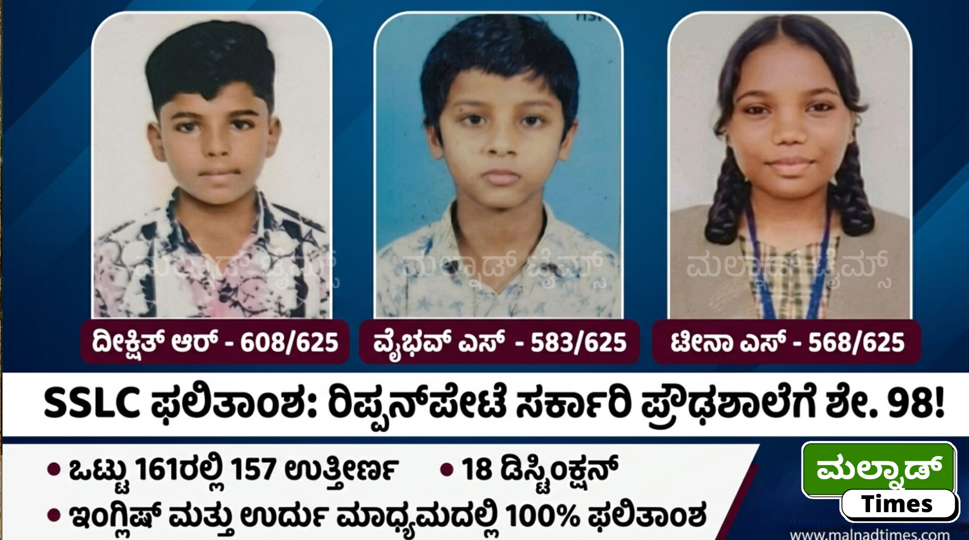 ರಿಪ್ಪನ್ಪೇಟೆ ; ಈ ಬಾರಿಯ ಎಸ್ಎಸ್ಎಲ್ಸಿ ಪರೀಕ್ಷೆಯಲ್ಲಿ ರಿಪ್ಪನ್ಪೇಟೆ ಸರ್ಕಾರಿ ಪ್ರೌಢಶಾಲೆ ಶೇ.98 ರಷ್ಟು ಫಲಿತಾಂಶ ಬಂದಿದೆ ಎಂದು ಉಪಪ್ರಾಚಾರ್ಯ ಕೆಸವಿನಮನೆ ರತ್ನಾಕರ್ ತಿಳಿಸಿದ್ದಾರೆ.