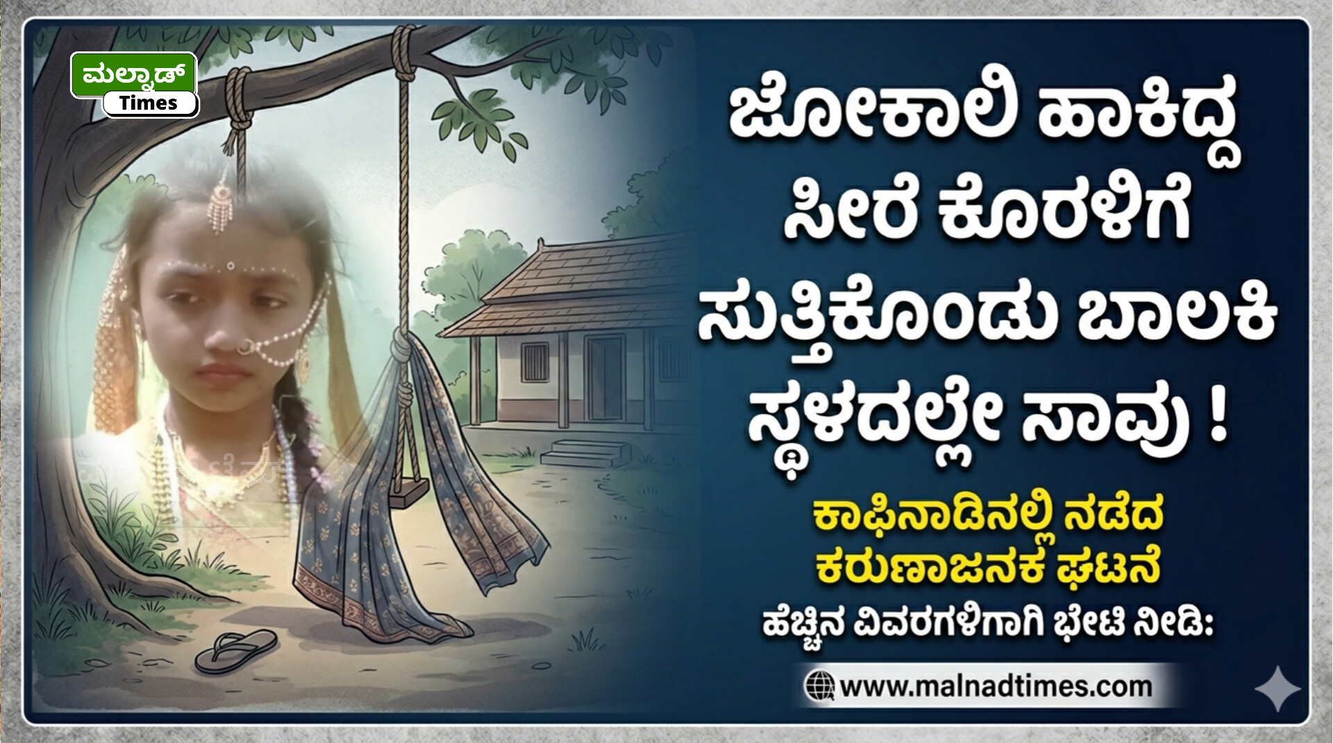 ಜೋಕಾಲಿ ಹಾಕಿದ್ದ ಸೀರೆ ಕೊರಳಿಗೆ ಸುತ್ತಿಕೊಂಡು ಬಾಲಕಿ ಸ್ಥಳದಲ್ಲೇ ಸಾವು !
