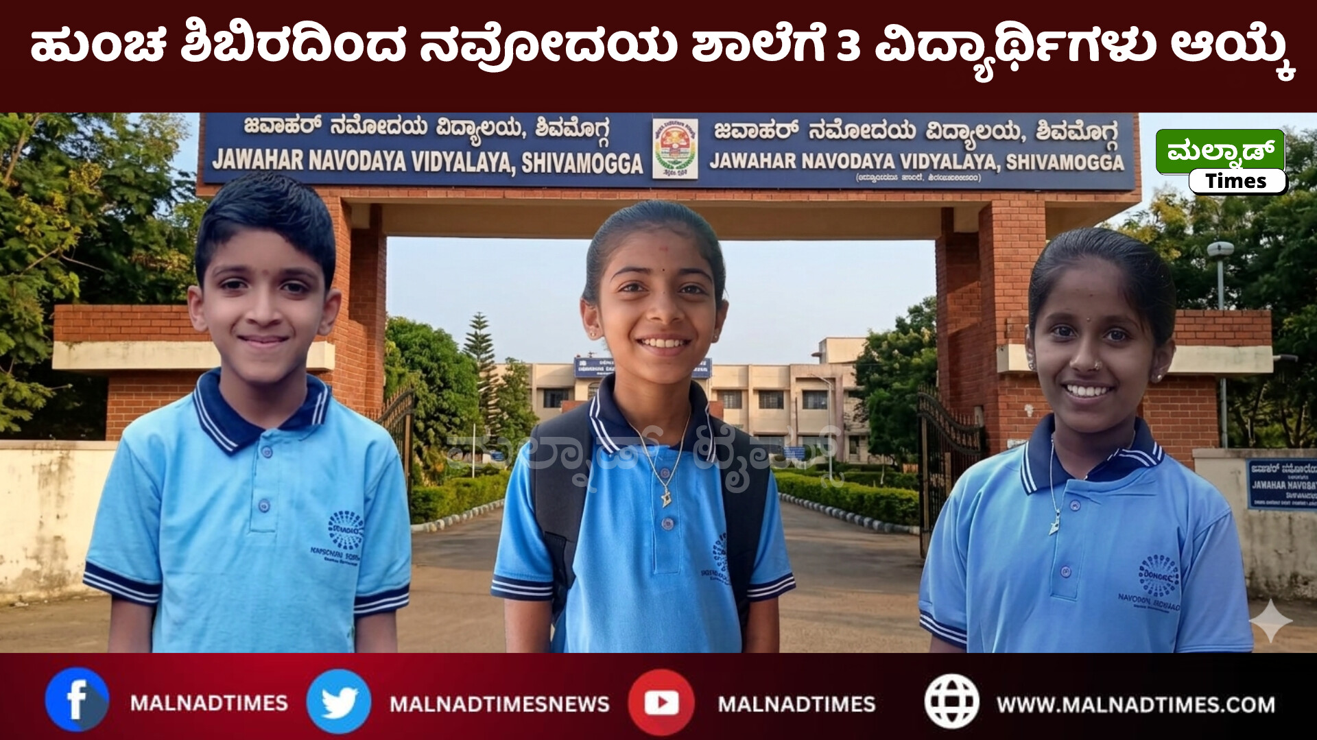ಹುಂಚ ಶಿಬಿರದಿಂದ ನವೋದಯ ಶಾಲೆಗೆ 3 ವಿದ್ಯಾರ್ಥಿಗಳು ಆಯ್ಕೆ !