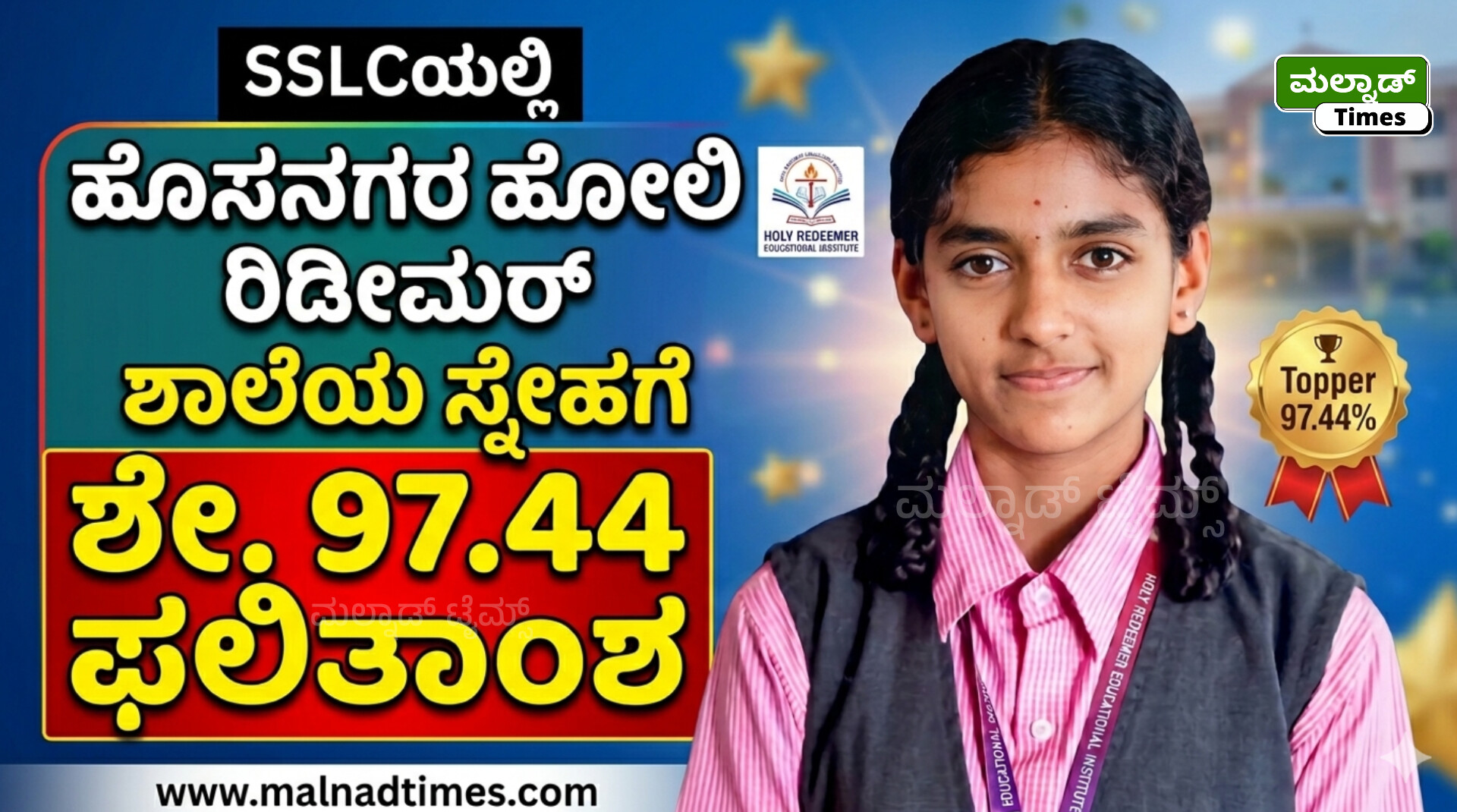 SSLC ; ಹೊಸನಗರ ಹೋಲಿ ರಿಡೀಮರ್ ಶಾಲೆಯ ಸ್ನೇಹಗೆ ಶೇ. 97.44 ಫಲಿತಾಂಶ