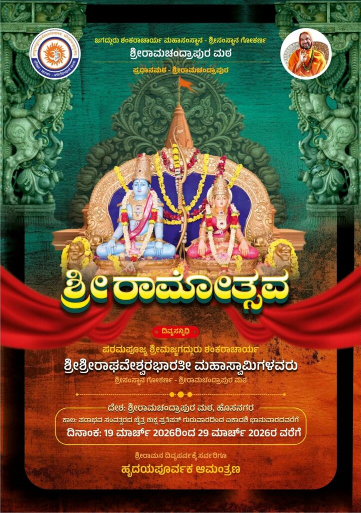 - ಮಾ. 27 ರಂದು ಶ್ರೀರಾಮಜನ್ಮೋತ್ಸವ, ಶ್ರೀಮನ್ಮಹಾರಥೋತ್ಸವ, ವಿರಾಟ್ ಶ್ರೀರಾಮಪೂಜೆ ಹಾಗೂ ಆಶೀರ್ವಚನ.