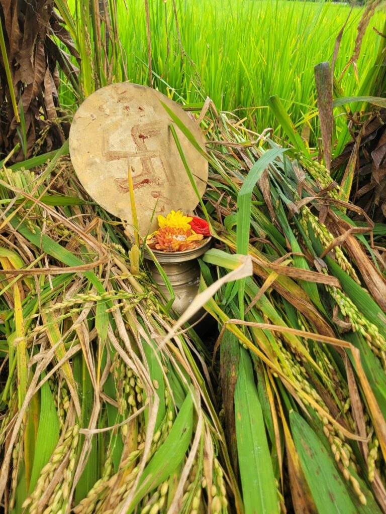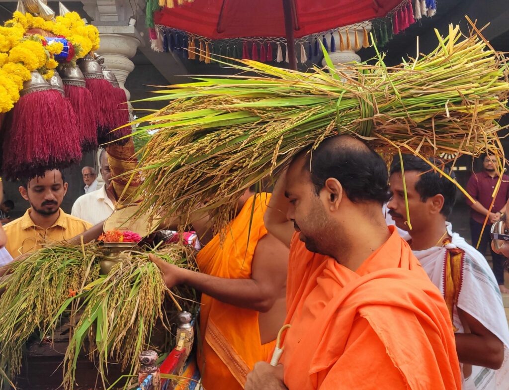 ಶ್ರೀಕ್ಷೇತ್ರದ ಸ್ವಾಮ್ಯದ ಹೊಲದಲ್ಲಿ ಬೆಳೆದ ಸಮೃದ್ಧ ಭತ್ತದ ಬೆಳೆ ಭೂ ತಾಯಿಯ ವರಪ್ರಸಾದ ಎಂದು ಉಲ್ಲೇಖಿಸಿ ಭೂಮಿಯನ್ನು ಸದ್ವಿನಿಯೋಗಗೊಳಿಸಿ, ಆರ್ಥಿಕವಾಗಿ ಸಬಲರಾಗಬೇಕು ಎಂಬ ಸಂದೇಶವಿತ್ತರು. ಪುರೋಹಿತ ಪದ್ಮರಾಜ ಇಂದ್ರ, ಸಹಪುರೋಹಿತರು ಪೂಜಾ ವಿಧಿ ನೆರವೇರಿಸಿದರು.