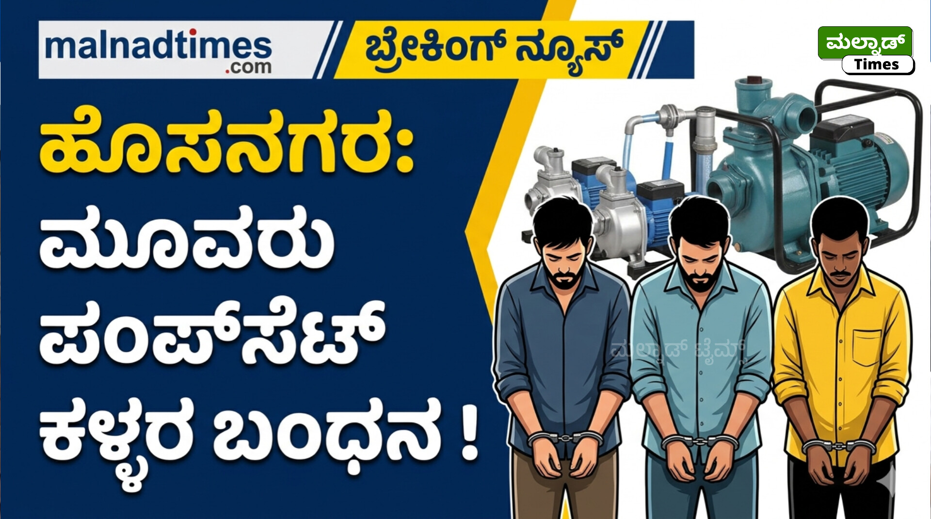 ಹೊಸನಗರ ; ತಾಲೂಕಿನ ಕಸಬಾ ಹೋಬಳಿ ಮಸಗಲ್ಲಿ ಗ್ರಾಮದ ಸರ್ವೆ ನಂಬರ್ 16 ರಲ್ಲಿ ಇರುವ ತೋಟದ ಜಾಗದಲ್ಲಿ ಅಳವಡಿಸಿದ ಸುಮಾರು 30 ಸಾವಿರ ರೂ. ಮೌಲ್ಯದ ಎರಡು ಹೆಚ್.ಪಿ ವಿದ್ಯುತ್ ಪಂಪ್ಸೆಟ್ ಹಾಗೂ ಪಕ್ಕದ ಕೆರೆಗೆ ಅಳವಡಿಸಿದ 3 ಹೆಚ್.ಪಿ ಬೋರ್ ಸಬ್ಮರ್ಸಿಬಲ್ ಪಂಪ್ ಕಳುವಾದ ಬಗ್ಗೆ ಜಾಗದ ವಾರಸುದಾರರ ಪುತ್ರ ವೆಂಕಟರಮಣ ಎಂಬುವರು ಪೊಲೀಸ್ ಠಾಣೆಗೆ ಏ. 26ರಂದು ದೂರು ನೀಡಿ ಕಳುವಾದ ಪಂಪ್ಸೆಟ್ಗಳನ್ನು ಹುಡುಕಿ ಕೊಡುವಂತೆ ದೂರು ನೀಡಿದ್ದರು.