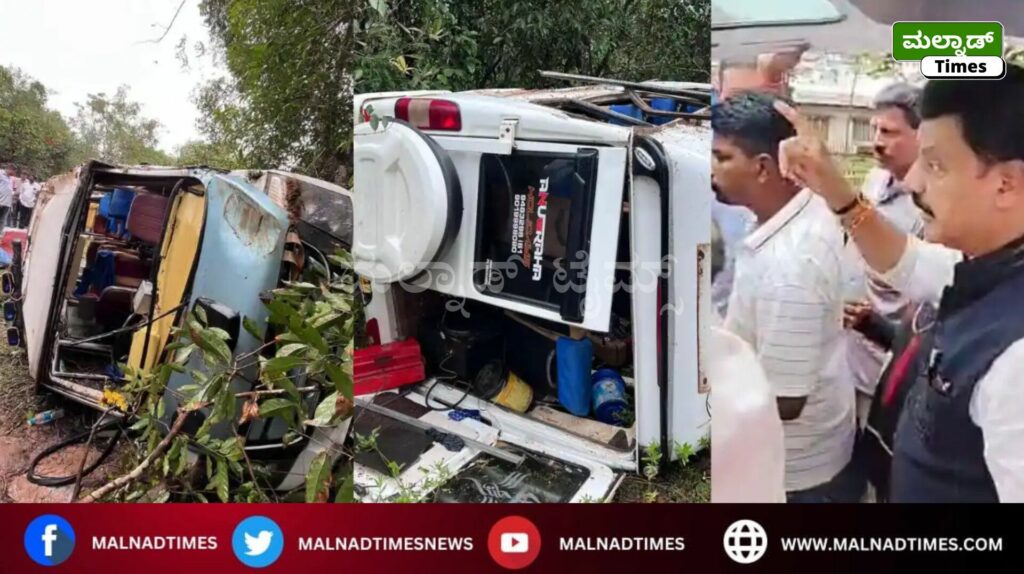 ಸಾಗರ ; ಇಲ್ಲಿನ ಆವಿನಹಳ್ಳಿ ಬಳಿ ಟಿಟಿ ವಾಹನವೊಂದು ಪಲ್ಟಿಯಾದ ಪರಿಣಾಮ 13 ಮಂದಿಗೆ ಗಾಯಗೊಂಡ ಘಟನೆ ನಡೆದಿದೆ.