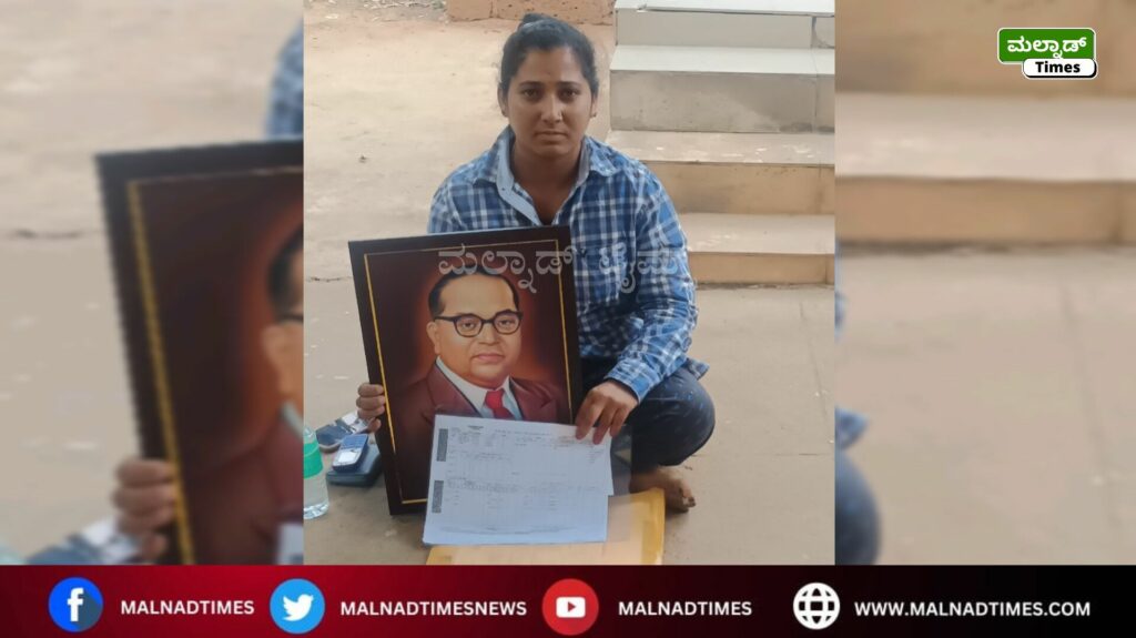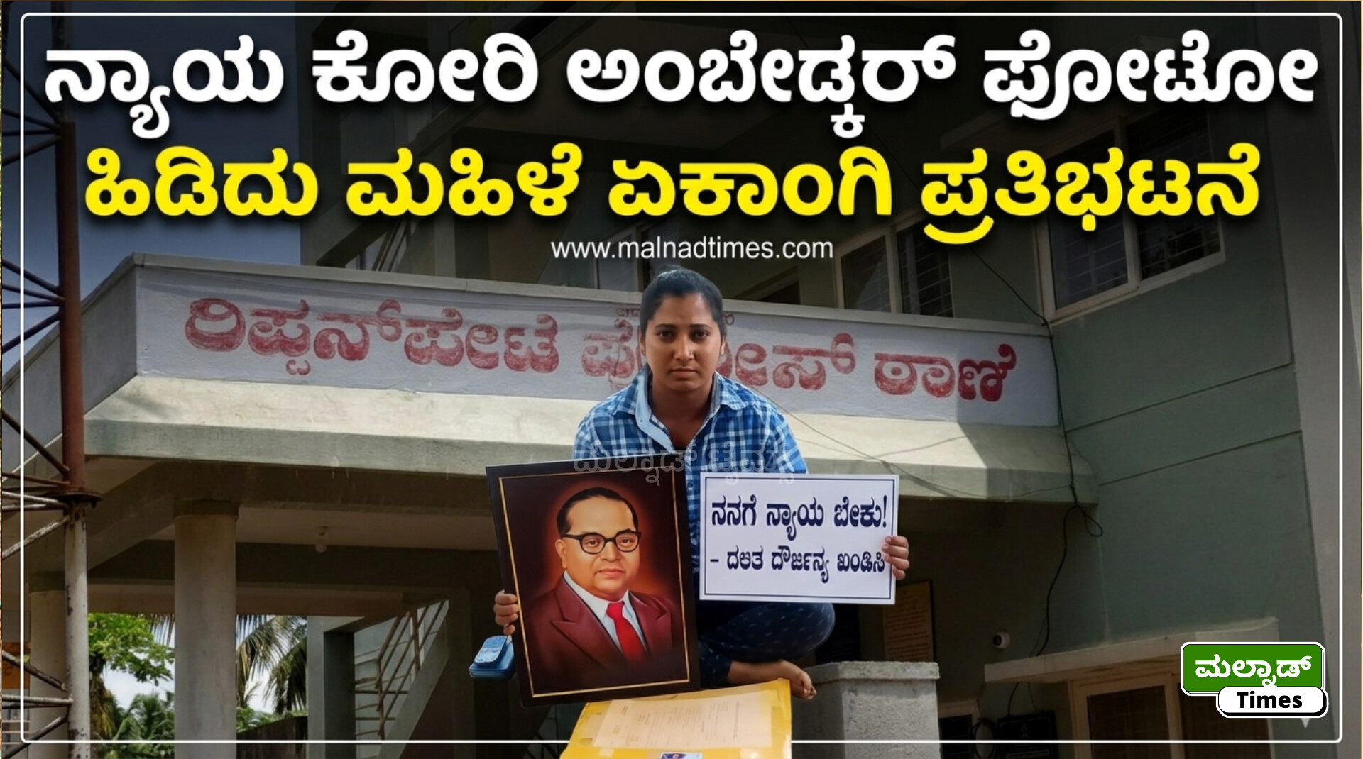 ರಿಪ್ಪನ್ಪೇಟೆ ; ಬಾಬಾಸಾಹೇಬ ಡಾ.ಅಂಬೇಡ್ಕರ್ ಜನ್ಮ ದಿನದಂದು ಇಲ್ಲಿನ ಗವಟೂರು ಗ್ರಾಮದ ನವ್ಯ ದೇವರಾಜ್ ಎಂಬ ಮಹಿಳೆ ನ್ಯಾಯಕೊಡಿಸುವಂತೆ ಆಗ್ರಹಿಸಿ ರಿಪ್ಪನ್ಪೇಟೆ ಠಾಣೆಯ ಎದುರು ಏಕಾಂಗಿಯಾಗಿ ಅಂಬೇಡ್ಕರ್ ಫೋಟೋ ಹಿಡಿದು ಪ್ರತಿಭಟನೆ ನಡೆಸಿದ ಘಟನೆ ನಡೆದಿದೆ.